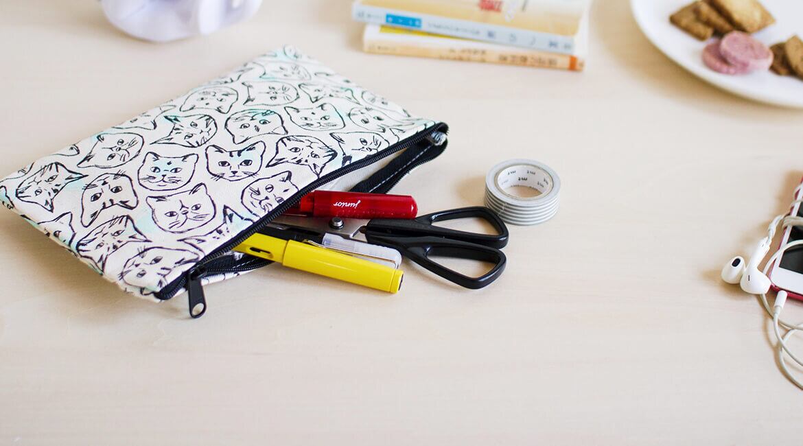 ステーショナリーや化粧品などの持ち運びに使い勝手の良いサイズ。ジッパーで開け閉めタイプです。